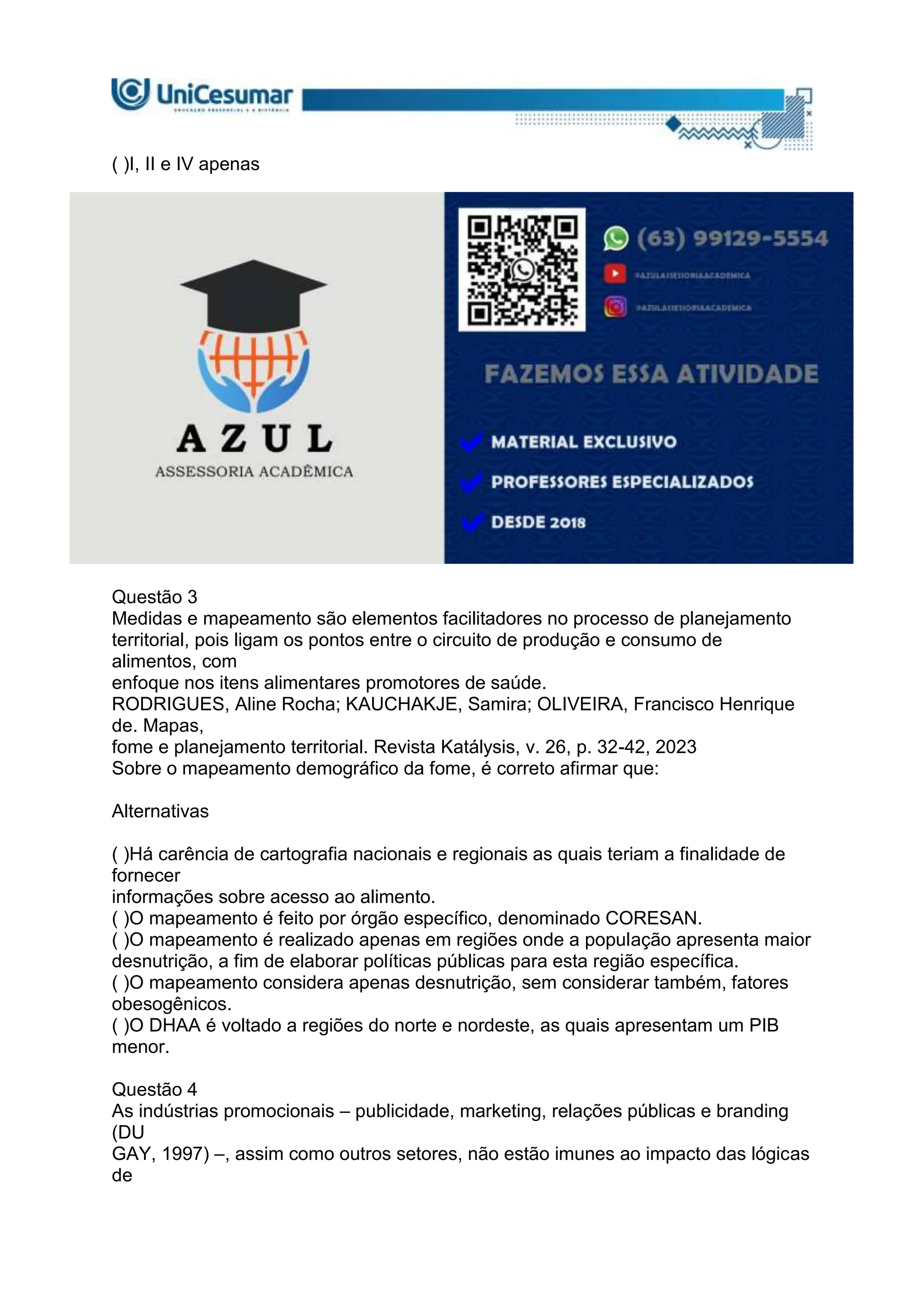 Assessoria Acadêmica FF - (44) 999859135 - Olá, estudante! Vamos realizar a nossaatividade de estudo.