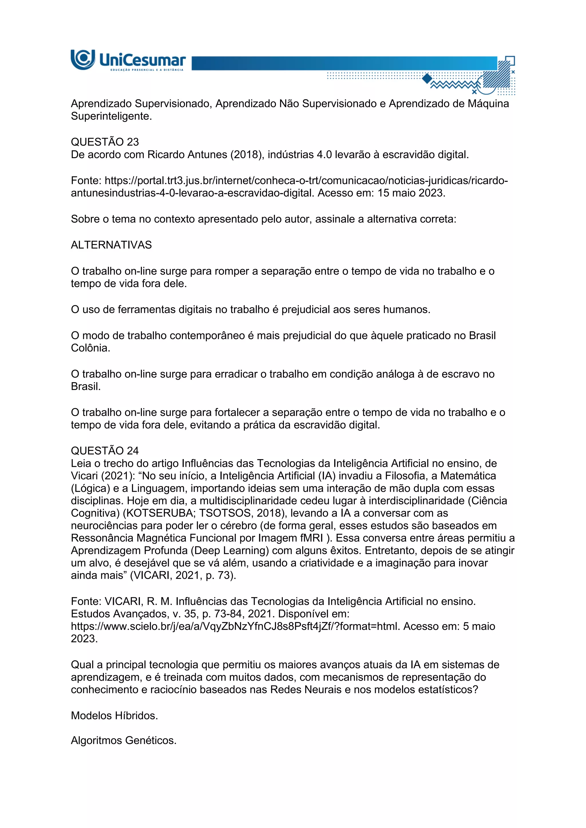 Veja grátis o arquivoATIVIDADEDEESTUDO-SEMANADECONHECIMENTOSGERAIS-532025enviado para a disciplinadeInteligência Artificial Categoria: Prova - 191287781