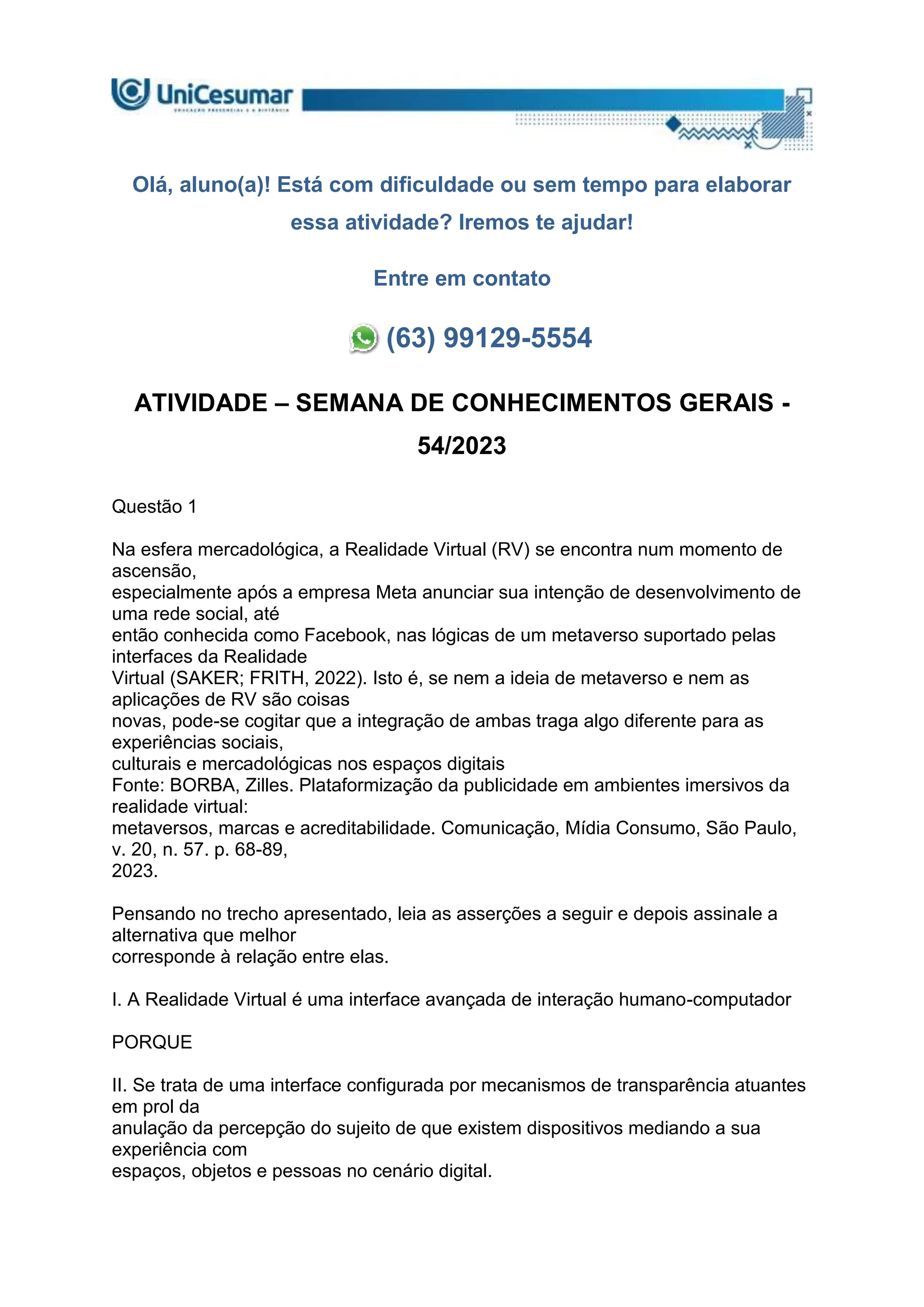 Atividade De Estudo - Semana De Conhecimentos Gerais - 53_2025