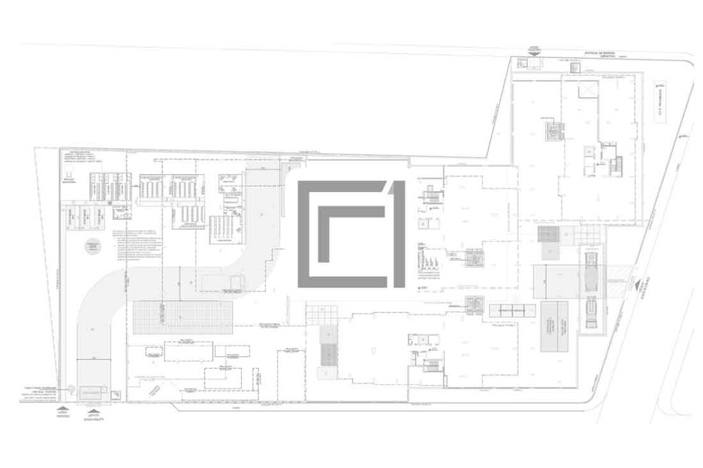 Modelo delayoutcom infraestruturadeumcanteirodeobrasde grande porte, com área superior a 12.000 m². Arquivo DWG editável. A planta inclui uma guarita de acesso controlado e dispõe os elementos docanteirodeforma otimizada para o fluxo daobra.