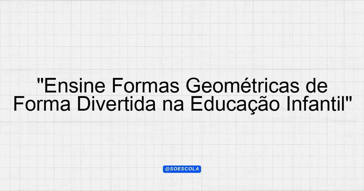 Objetivos De Trabalhar As Formas Geometricas Na Educação Infantil